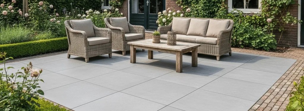 Keramische tegels zijn veel dichter van structuur, waardoor ze warmte langer vasthouden. Vooral in donkere kleuren kunnen ze in volle zon temperaturen tot 50 graden bereiken. Poreuze materialen zoals beton of bepaalde natuurstenen blijven vaak 10 à 15 graden koeler. De dikte van de tegel speelt ook mee: dikkere tegels warmen trager op, maar houden de warmte langer vast.